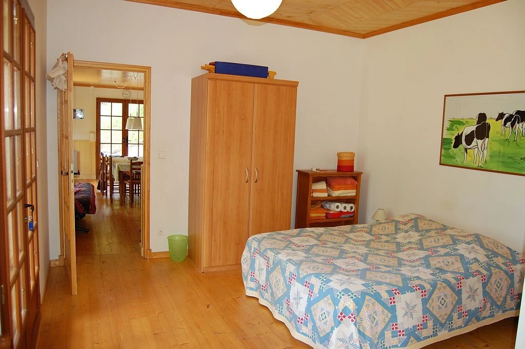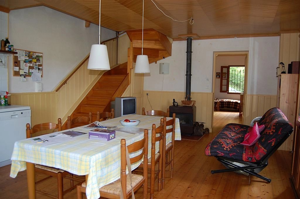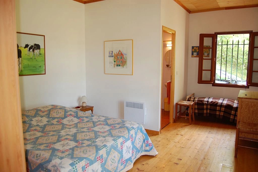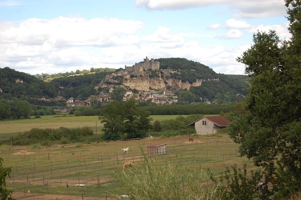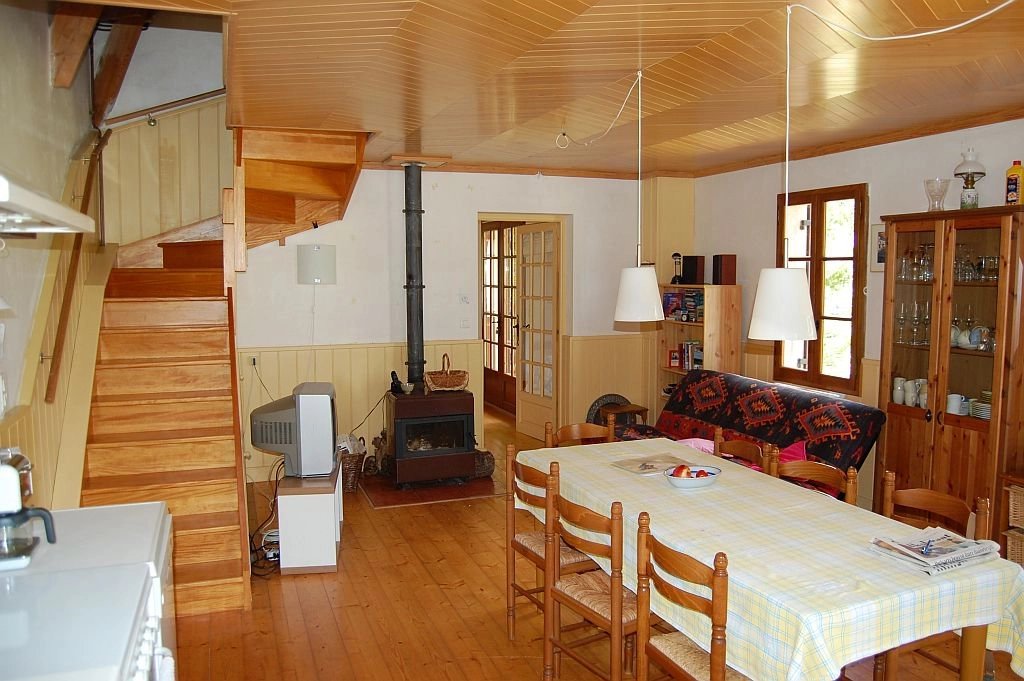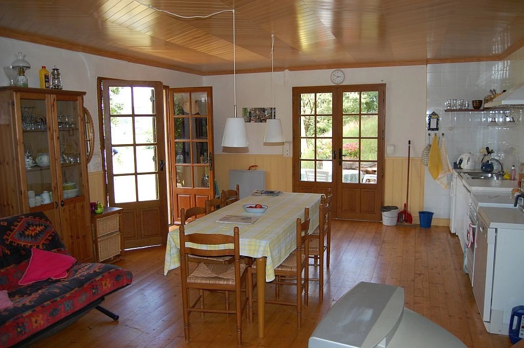 Tegenover het indrukwekkende Middeleeuwse kasteel van Beynac staat deze leuke vakantiewoning uit 1996 en uitgebreid in 2002 op 1,5 ha vooral beboste grond. Vanaf het terras bij de woning is er een uniek, panoramisch uitzicht op het kasteel en de vallei van de Dordogne. De woning heeft op de begane grond een ruime woonkamer met eenvoudige keuken, houtkachel, parketvloer en twee stel openslaande deuren naar de tuin, een slaapkamer met parketvloer, openslaande deuren naar tuin en eigen betegelde badkamer met douche, toilet en wastafel. Op de etage - onder een schuin dak - zijn er een overloop, een ruime badkamer met douche, toilet en twee wastafels, en een ruime slaapkamer met hoge nok, zichtbare balken en dakkapel. Tegen de woning bevindt zich een schuurtje voor opslag van (tuin)gereedschap, fietsen etc. Op het terrein is voldoende ruimte voor parkeren van voertuigen. Goed onderhouden woning met eenvoudig landelijk karakter. Een echte vakantiewoing. Ref. 659-AQ0233HA.