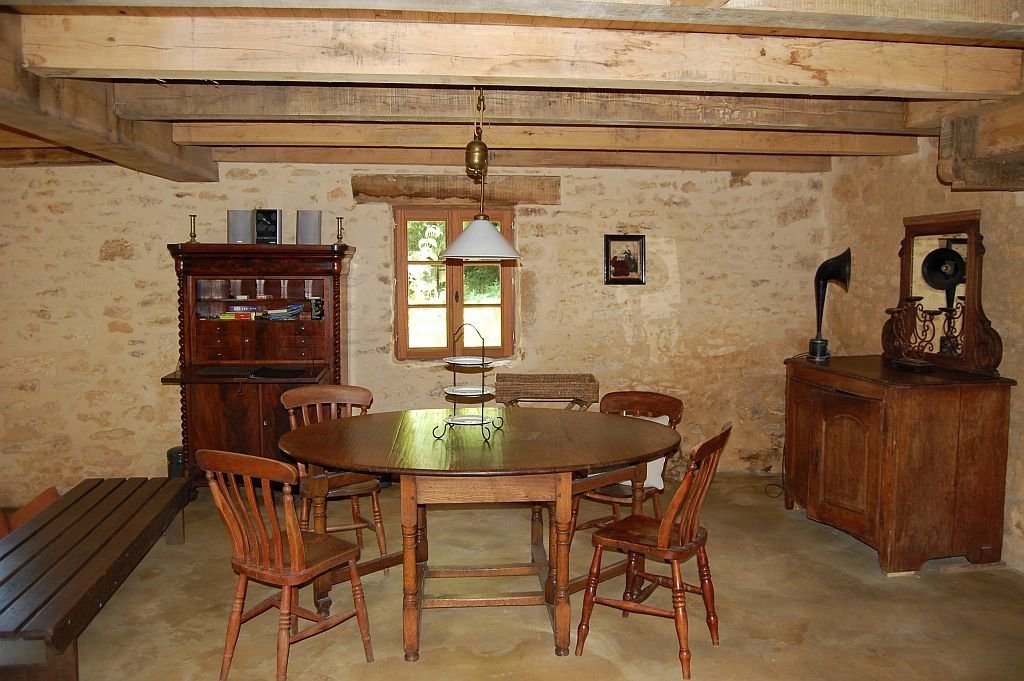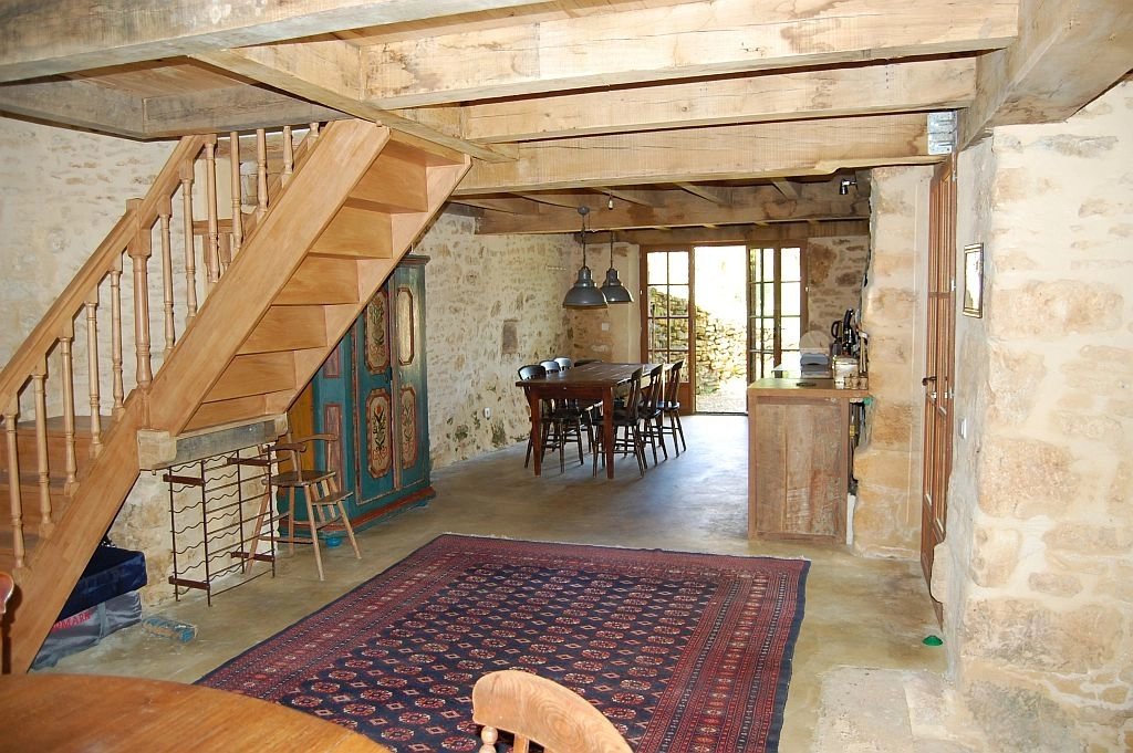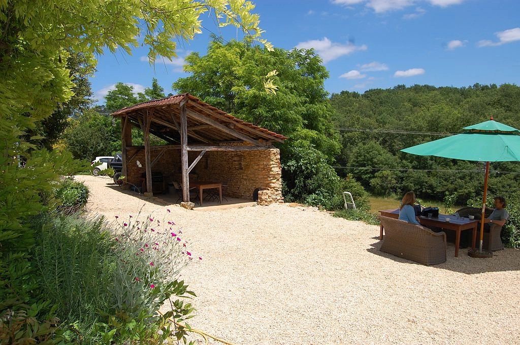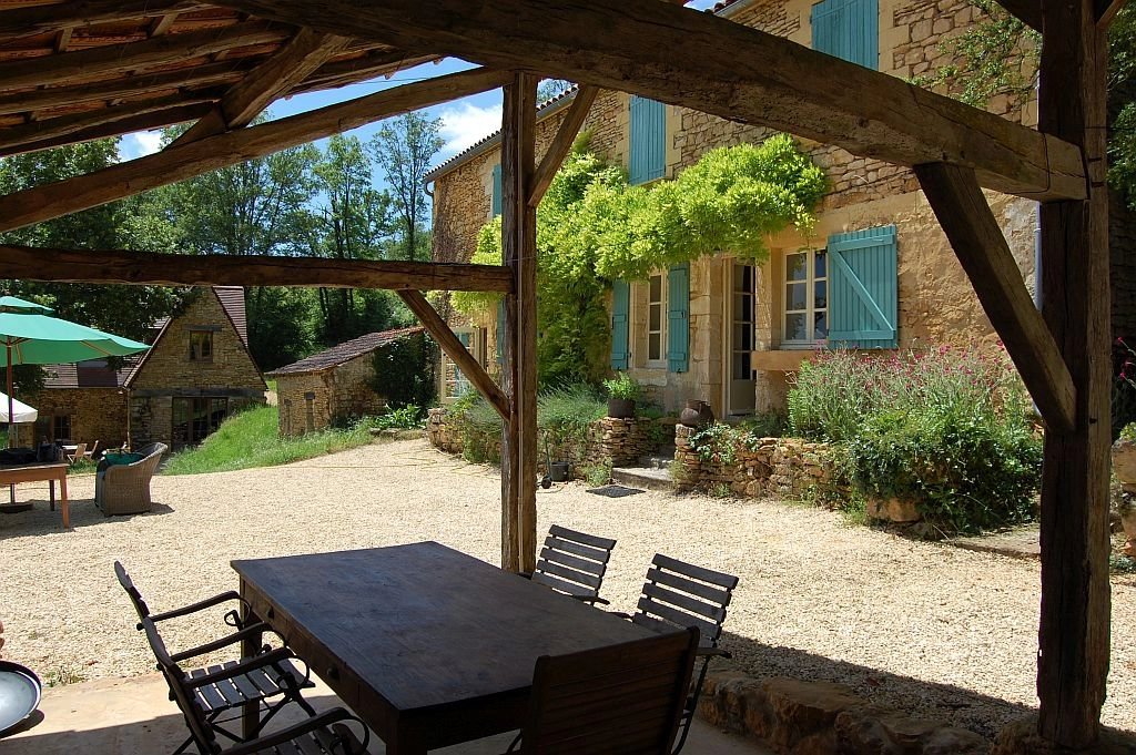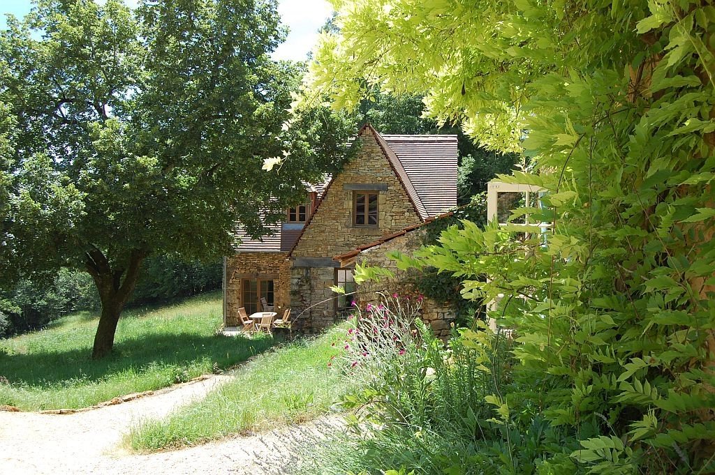 ONDER BOD! De hand van de artiest is duidelijk herkenbaar. Eenvoud en authenticiteit vormen de ingrediënten van de complete renovatie en stijlvolle inrichting van dit oude goed. Het resultaat is een landgoed 'delle arte' met stenen muren, balken plafonds, houten, met grind ingelegde of betegelde vloeren, oude stenen schouwen en op maat gemaakte keukens en doucheruimten. Het complex bestaat uit een natuurstenen woonhuis met woonkamer met keukenhoek en stenen schouw met houtkachel, 4 slaapkamers waarvan 1 op de begane grond en 2 doucheruimten waarvan 1 op de begane grond, een stenen gîte met eetkamer met keukenhoek, verlaagde salon met natuurstenen schouw met houtkachel en ingelegde grindvloer en 3 slaapkamers en doucheruimte op de etage, een zwembad van 7 x4 m met terras, een open schuur voor de maaltijden, enkele stenen bijgebouwtjes voor opslag van gereedschap en een mooi uitzicht op de beboste vallei. Rustige ligging op 1 ha tussen Les Eyzies en Sarlat. Een waar paradijsje! Ref. 745-AQ-0230HA.